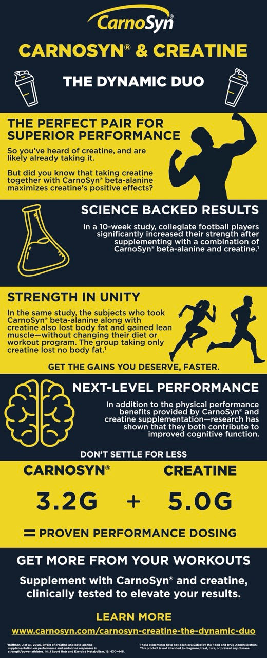 At Historic Labs, we build our formulas on ingredients with real, repeatable results. Two of the most validated are CarnoSyn® (beta-alanine) and Creapure® (creatine monohydrate). Together, they target two core performance systems: